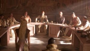 En un mundo fantástico y en un contexto medieval varias familias, relativas a la nobleza, se disputan el poder para dominar el territorio ficticio de Poniente (Westeros) y tomar el control de los Siete Reinos desde el Trono de Hierro, lugar donde el rey ejerce el poder.